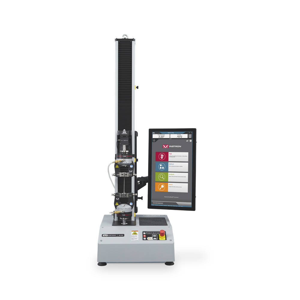 The Instron 34SC-1 Universal Testing System is a single-column, electromechanical testing machine designed for low-force mechanical testing applications, offering precision, reliability, and versatility. Part of Instron’s 3400 Series, it has a force capacity of up to 1 kN (1000 N or approximately 225 lbf), making it ideal for tensile, compression, flexure, peel, puncture, friction, and shear tests on a wide range of materials, including plastics, textiles, biomaterials, thin films, and small components.