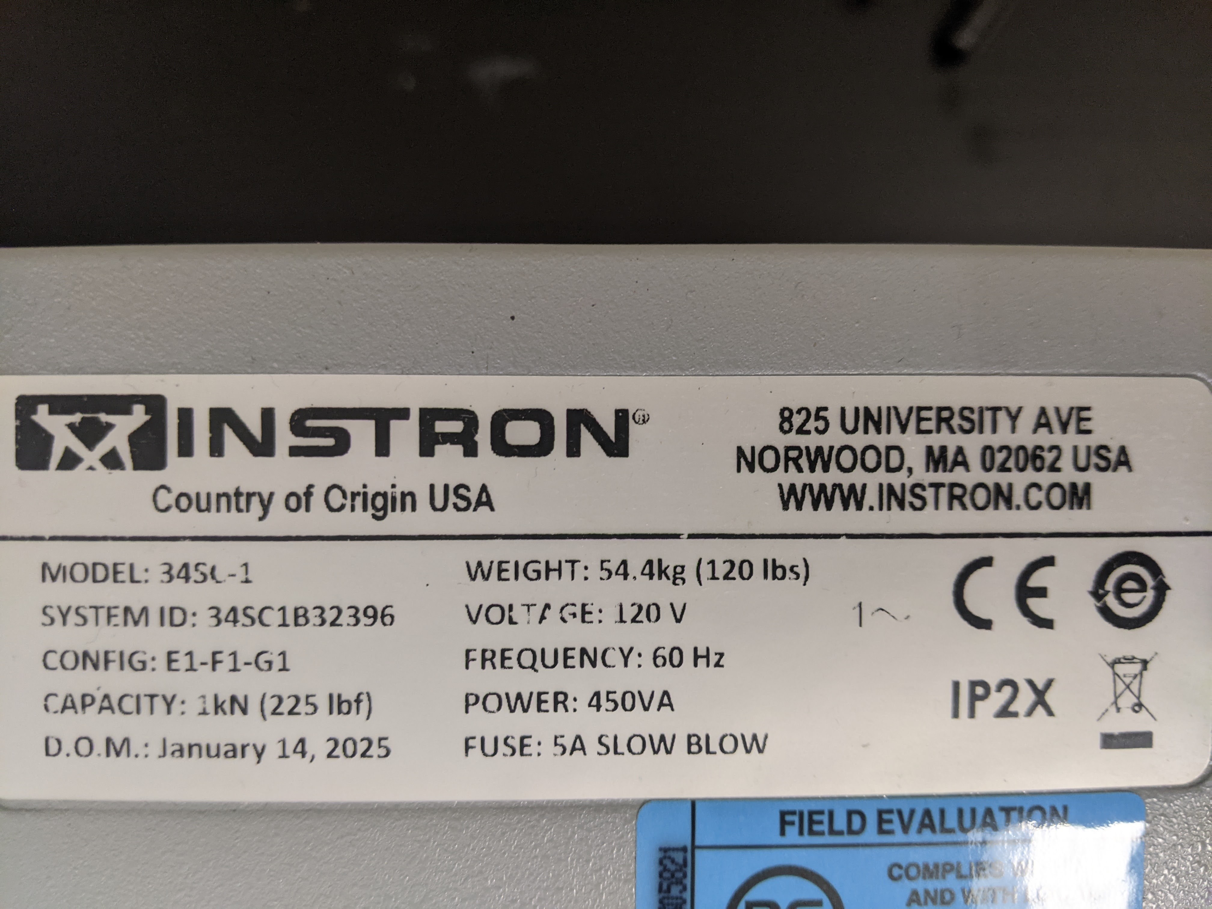 | Model | Instron 34SC-1 (3400 Series, Single Column) |